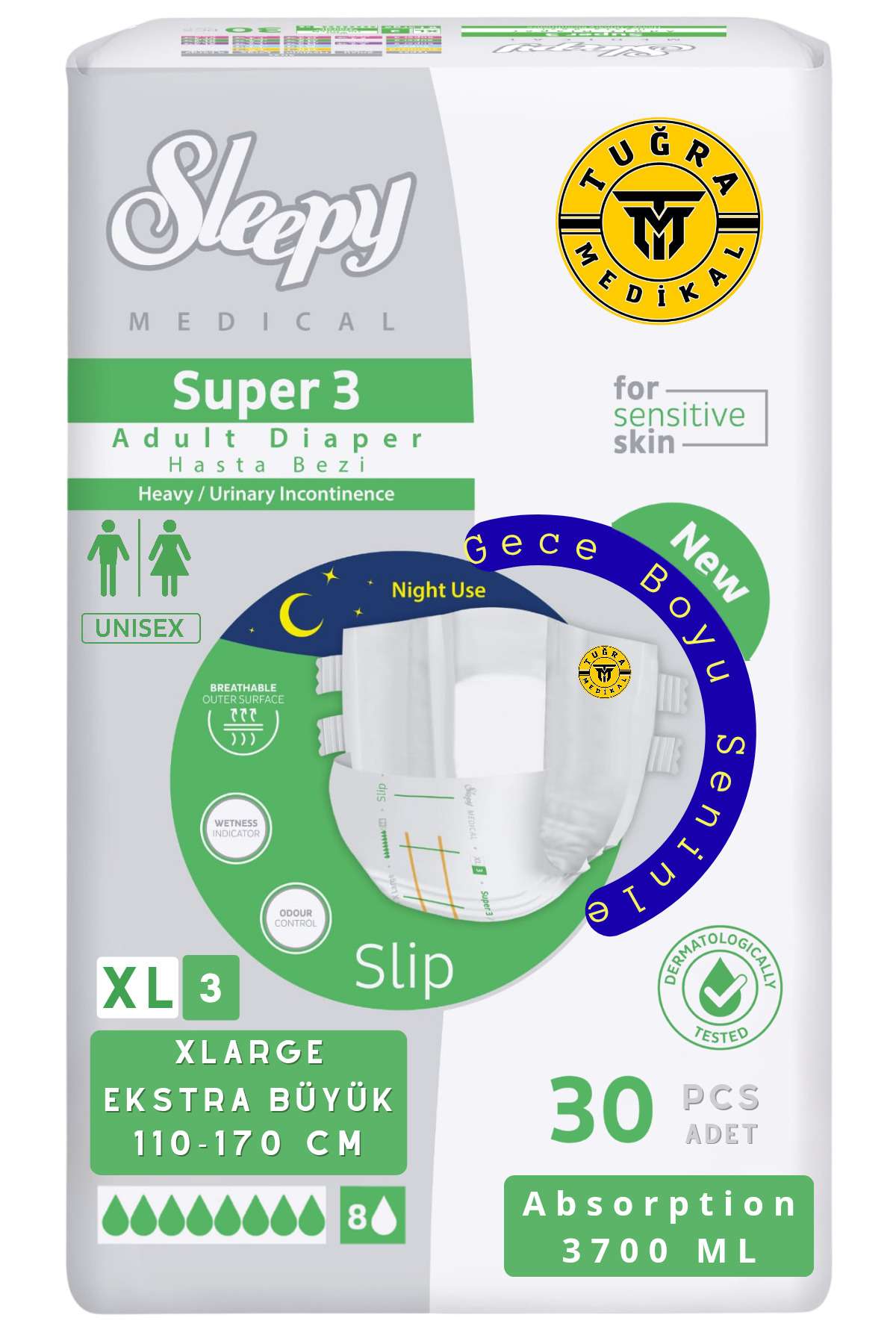 Belbantlı Yetişkin Hasta Bezi Unısex Süper 3 Gece Bezi | MEDIUM (M) 30 Adet 1 PAKET
