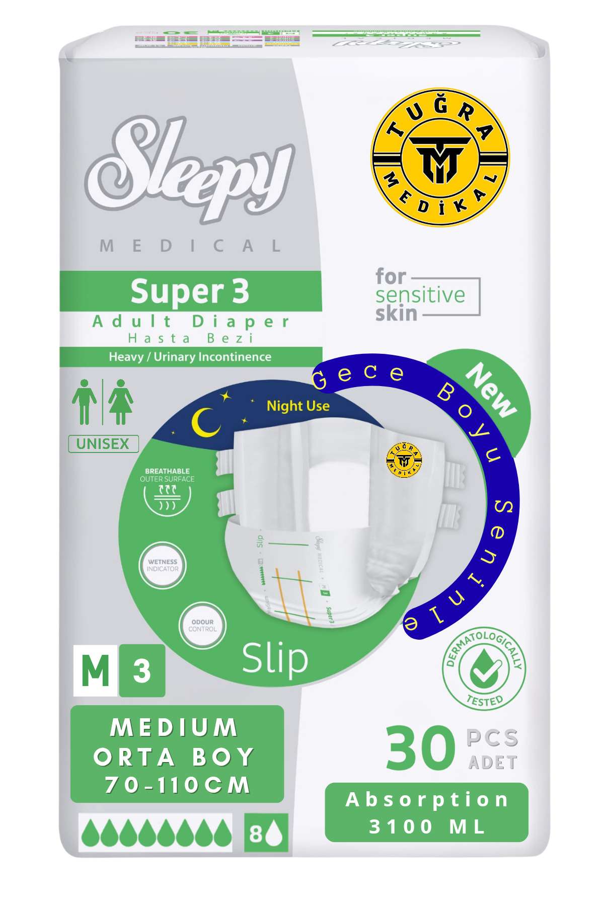Belbantlı Yetişkin Hasta Bezi Unısex Süper 3 Gece Bezi | MEDIUM (M) 30 Adet 1 PAKET