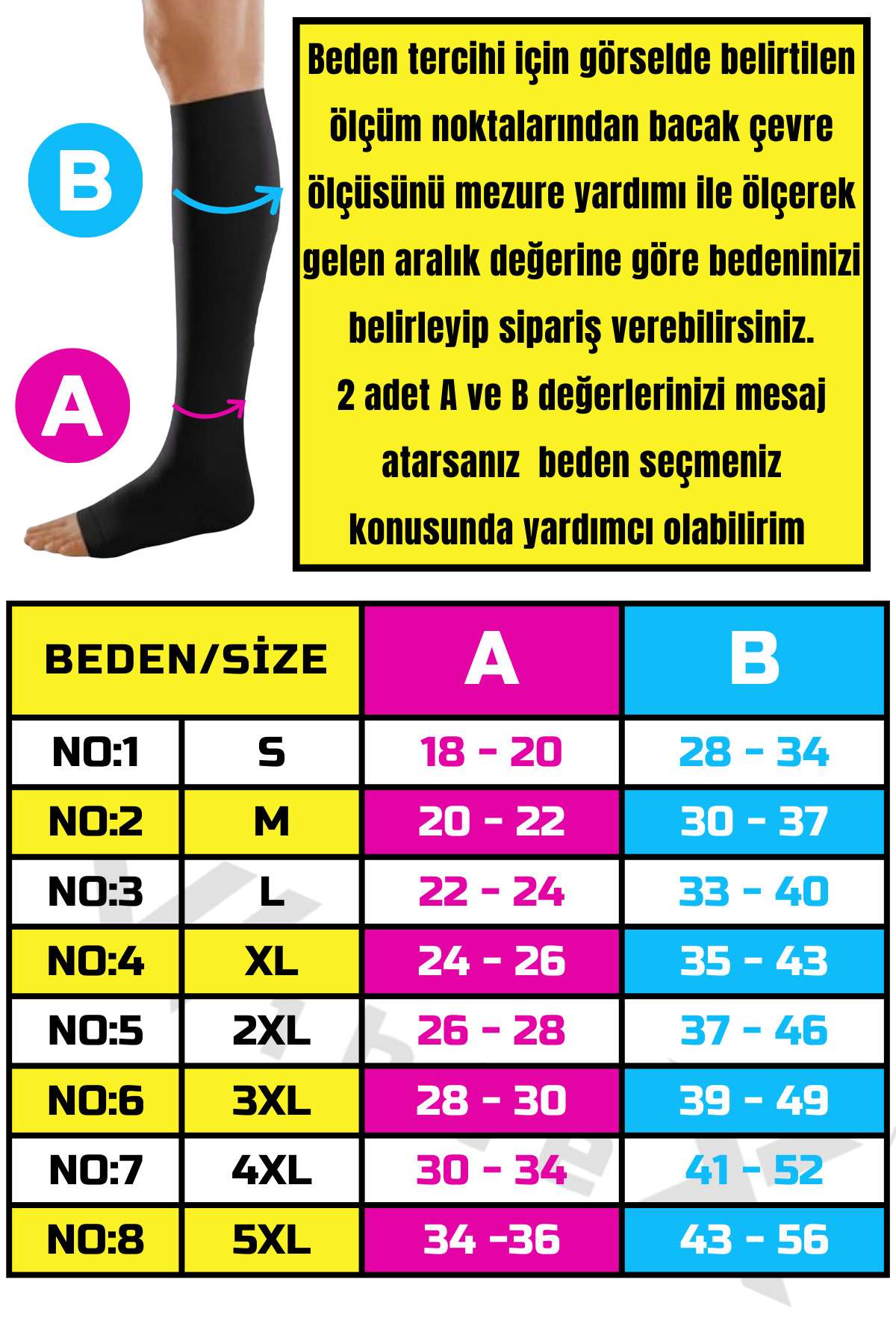 VARİS ÇORAPLARI ERKEK VE BAYANLAR İÇİN ORTAKLAŞA TASARLANMIŞTIR; Tedavinin etkisi ve devamlılığı için doğru ölçüdeki VARİS çorabını kullanmanız gerekmektedir; İleri derece varislerde ilerlemeyi önler ve tedaviye yardımcı olur; Uyguladığı dereceli basınç sayesinde kanın tek bir noktada birikmesini engelleyerek kan dolaşımının hızlanmasına yardımcı olur; Bacaklardaki yorgunluk hissini azaltır; Uzun yolculuklarda kullanıldığında ödemi engelleyen, rahatlatıcı çoraptır; Gün içinde ayakta kaldığınız sürece VARİS çorabı ile dolaşılır; VARİS ÇORABI BEDEN SEÇİMİNİZİ YAPMADAN ÖNCE GEREKLİ BİLGİLER Ürün görselinde olan beden tablosundaki belirtilen bölgelerden ölçüm yapınız; Her iki bacaktan da ölçü alınmalı, not edilerek ürün görselinde bulunan beden tablosundan en uygun aralık seçilmelidir; (Sabah uyanınca alınan ölçü en doğru beden seçimini sağlar) VARİS ÇORAPLARINDA BEDEN NASIL BELİRLENİR 1; Ayak bileğinin en ince yerinden çevre ölçüsünü alın, ölçüm tablosunda A olarak gösterilir; 2; Alt baldırın en kalın yerinden çevre ölçüsünü alın, ölçüm tablosunda B olarak gösterilir; VARİS ÇORABI KULLANIRKEN DİKKAT ETMENİZ GEREKENLER; Sabah uyandığınızda çorabınızı giymeden önce sırt üstü uzanıp ayaklarınızı yukarı 2 dakika kaldırın ve sonra giyin; Kirlenen çoraplarınızı asla çamaşır makinasına atmayın; Yıkamayı sadece elde çitilemeden ılık sabunlu su ve ile yapınız; Kurutma işlemini petek, sandalye çamaşır ipi gibi yerlere asmayınız; Düz bir zemine, havlu serip, havlu arasında oda ısısında kurutunuz;