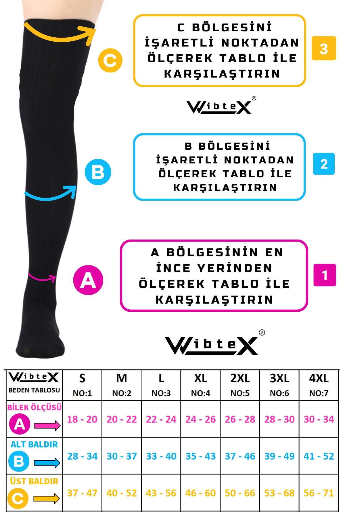 Varis çorapları erkek ve bayanlar için ortaklaşa olarak tasarlanmıştır; Tedavinin etkisi ve devamlılığı için doğru ölçüdeki çorabını kullanmanız gerekmektedir; İleri derece varislerde ilerlemeyi önler ve tedaviye yardımcı olur; Uyguladığı dereceli basınç sayesinde kanın tek bir noktada birikmesini engelleyerek kan dolaşımının hızlanmasına yardımcı olur; Bacaklardaki yorgunluk hissini azaltır; Uzun yolculuklarda kullanıldığında ödemi engelleyen,unisex rahatlatıcı çoraptır; Gün içinde ayakta kaldığınız sürece çorabı ile dolaşılır; VARİS ÇORABI BEDEN SEÇİMİNİZİ YAPMADAN ÖNCE GEREKLİ BİLGİLER Ürün görselinde olan beden tablosundaki belirtilen bölgelerden ölçüm yapınız; Her iki bacaktan da ölçü alınmalı, not edilerek ürün görselinde bulunan beden tablosundan en uygun aralık seçilmelidir; (Sabah uyanınca alınan ölçü en doğru beden seçimini sağlar) VARİS ÇORAPLARINDA BEDEN NASIL BELİRLENİR 1; Ayak bileğinin en ince yerinden çevre ölçüsünü alın,ölçüm tablosunda A olarak gösterilir; (oturur vaziyette iken) 2; Alt baldırın en kalın yerinden çevre ölçüsünü alın,ölçüm tablosunda B olarak gösterilir; (oturur vaziyette iken) 3; Üst baldırın en kalın yerinden çevre ölçüsünü alın,ölçüm tablosunda c olarak gösterilir; (oturur vaziyette iken) VARİS ÇORABI KULLANIRKEN DİKKAT ETMENİZ GEREKENLER; Sabah uyandığınızda çorabınızı giymeden önce sırt üstü uzanıp ayaklarınızı yukarı 5 dakika kaldırın ve sonra giyin; Kirlenen çoraplarınızı asla çamaşır makinasına atmayın; Yıkamayı sadece elde çitilemeden ılık sabunlu su ve ile yapınız; Kurutma işlemini petek, sandalye çamaşır ipi gibi yerlere asmayınız; Düz bir zemine, havlu serip, havlu arasında oda ısısında kurutunuz; ; ;;