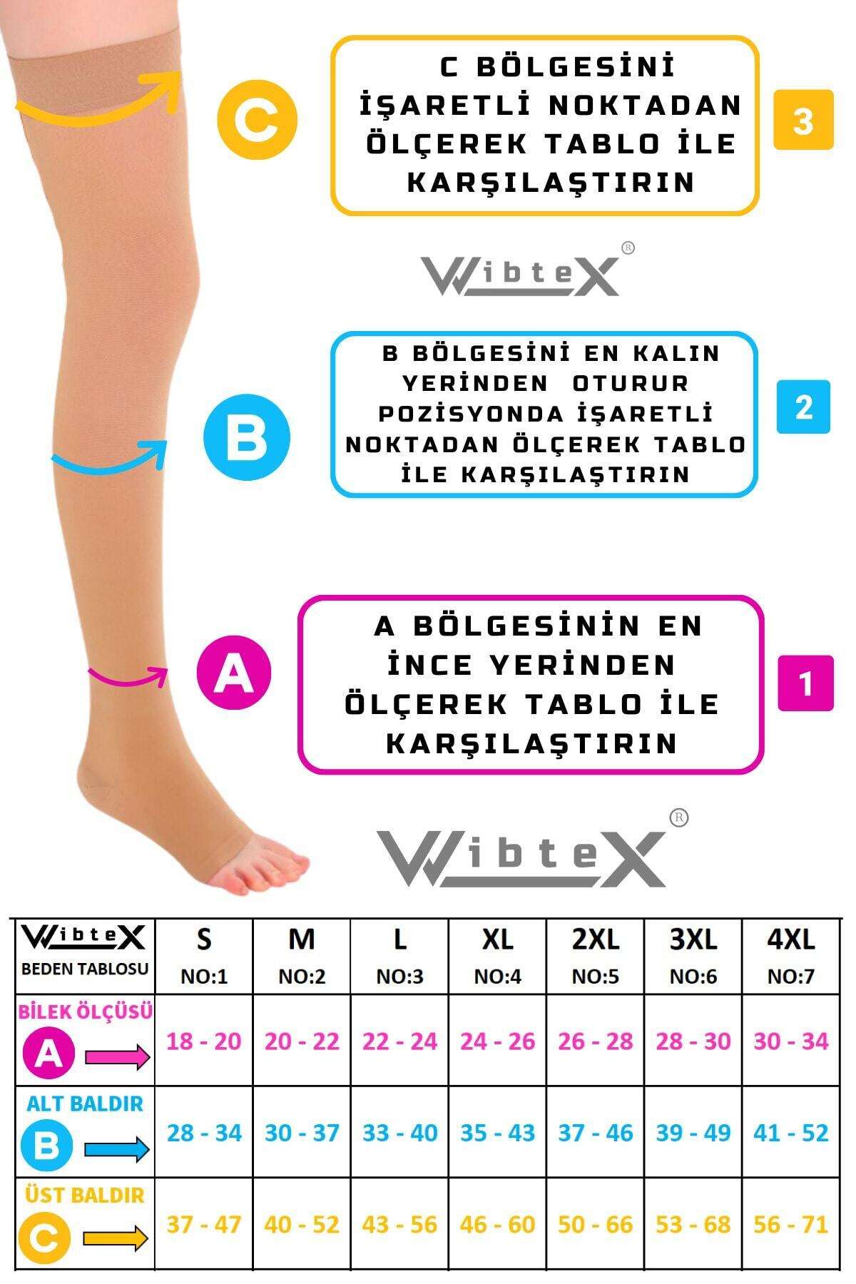 İleri derece lerde ilerlemeyi önler ve tedaviye yardımcı olur.; Uyguladığı dereceli basınç sayesinde kanın tek bir noktada birikmesini engelleyerek kan dolaşımının hızlanmasına yardımcı olur.; Bacaklardaki yorgunluk hissini azaltır.; Uzun yolculuklarda kullanıldığında ödemi engelleyen, unisex rahatlatıcı çoraptır.; ÇORABI BEDEN SEÇİMİNİZİ YAPMADAN ÖNCE GEREKLİ BİLGİLER Ürün görselinde olan beden tablosundaki belirtilen bölgelerden ölçüm yapınız.; Her iki bacaktan da ölçü alınmalı, not edilerek ürün görselinde bulunan beden tablosundan en uygun aralık seçilmelidir.; (Sabah uyanınca alınan ölçü en doğru beden seçimini sağlar) ÇORAPLARINDA BEDEN NASIL BELİRLENİR 1. Ayak bileğinin en ince yerinden çevre ölçüsünü alın, ölçüm tablosunda A olarak gösterilir.; (oturur vaziyette iken) 2. Alt baldırın en kalın yerinden çevre ölçüsünü alın, ölçüm tablosunda B olarak gösterilir.; (oturur vaziyette iken) 3. Üst baldırın en kalın yerinden çevre ölçüsünü alın,ölçüm tablosunda c olarak gösterilir.; (oturur vaziyette iken) ÇORABI KULLANIRKEN DİKKAT ETMENİZ GEREKENLER *Sabah uyandığınızda çorabınızı giymeden önce sırt üstü uzanıp ayaklarınızı yukarı 2 dakika kaldırın ve sonra giyin.; *Kirlenen çoraplarınızı asla çamaşır makinasına atmayın.; *Yıkamayı sadece elde çitilemeden ılık sabunlu su ve ile yapınız.; *Kurutma işlemini petek, sandalye çamaşır ipi gibi yerlere asmayınız.; *Düz bir zemine, havlu serip, havlu arasında oda ısısında kurutunuz.