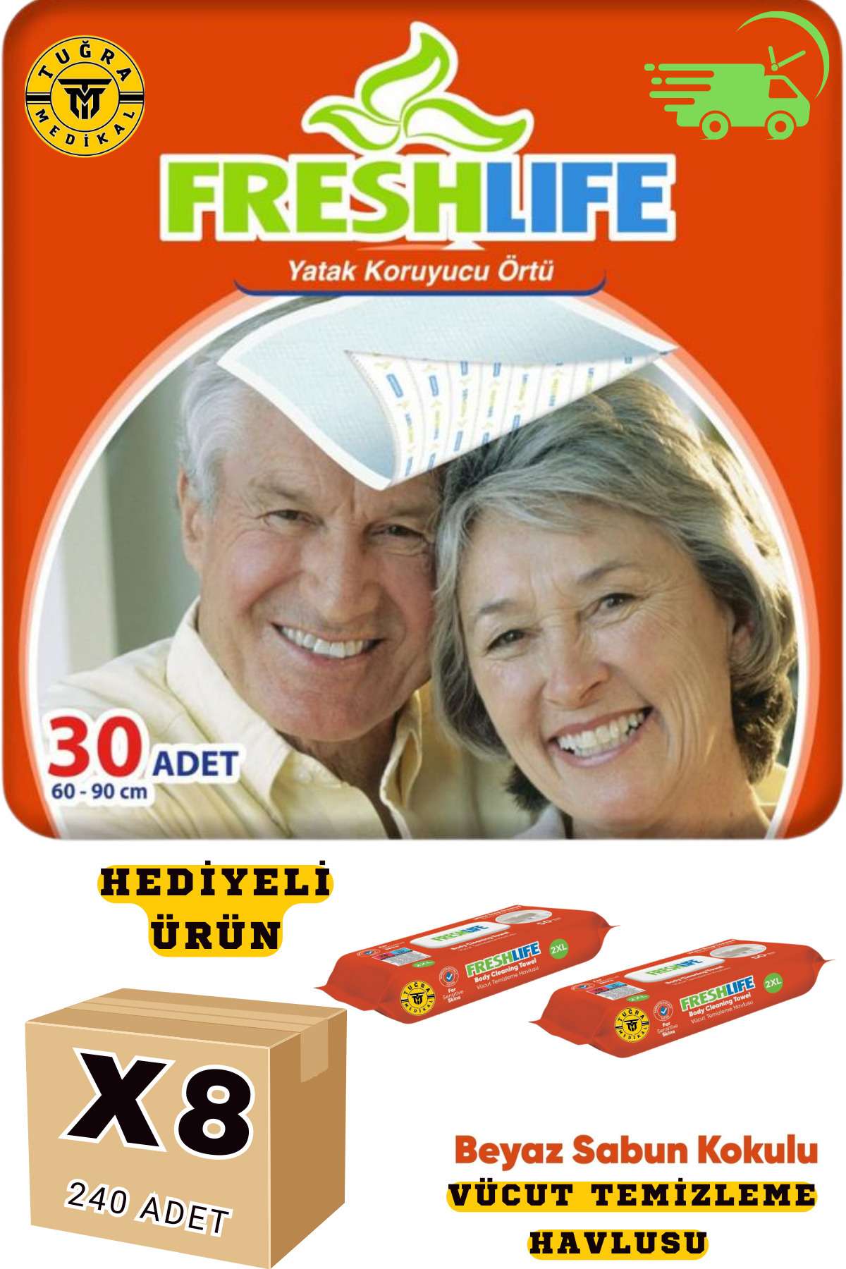 FRESHLİFE 60X90 ÇİŞ PEDİ 8 PAKET 240 ADET (HEDİYELİ)