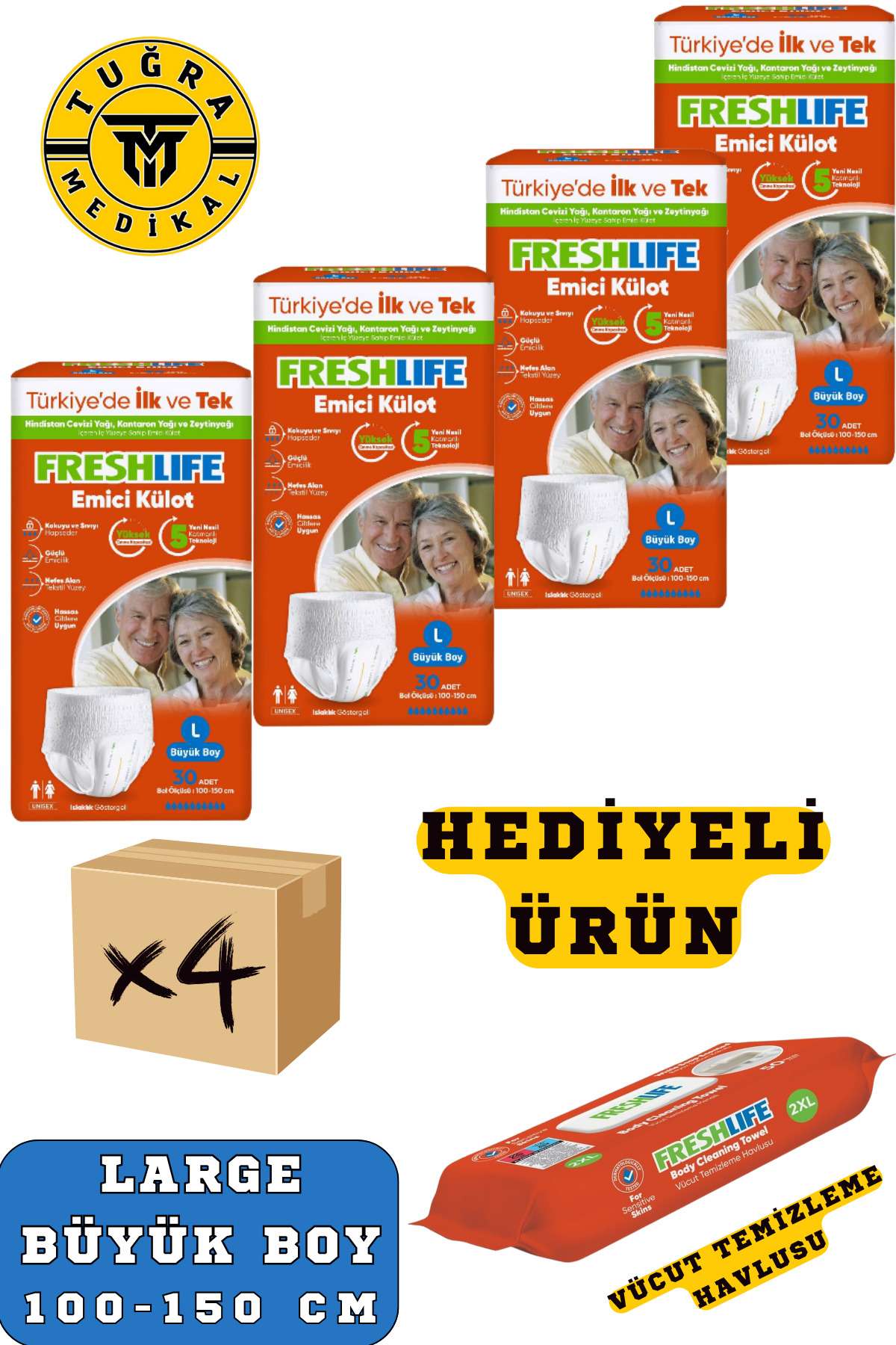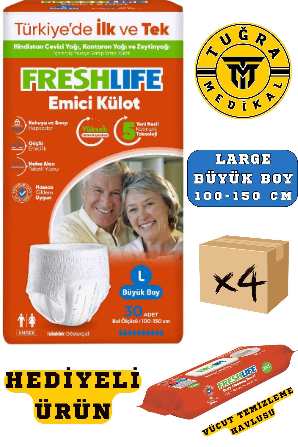“Freshlife Yetişkin Külotlu Hasta Bezi Emici Külot L (BÜYÜK BOY) 120 Adet 4 Paket” için yorum yapan ilk kişi siz olun Yanıtı iptal et