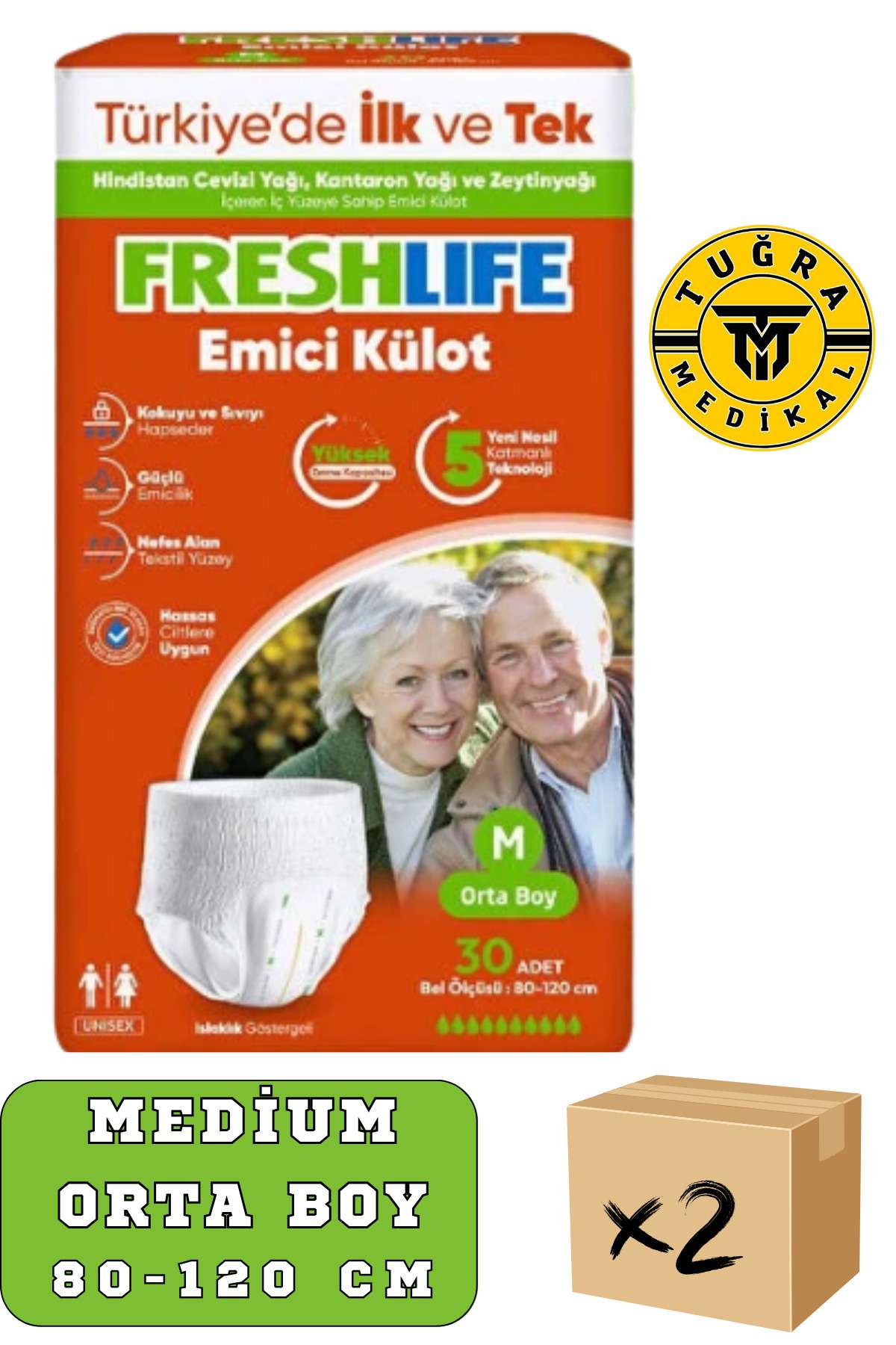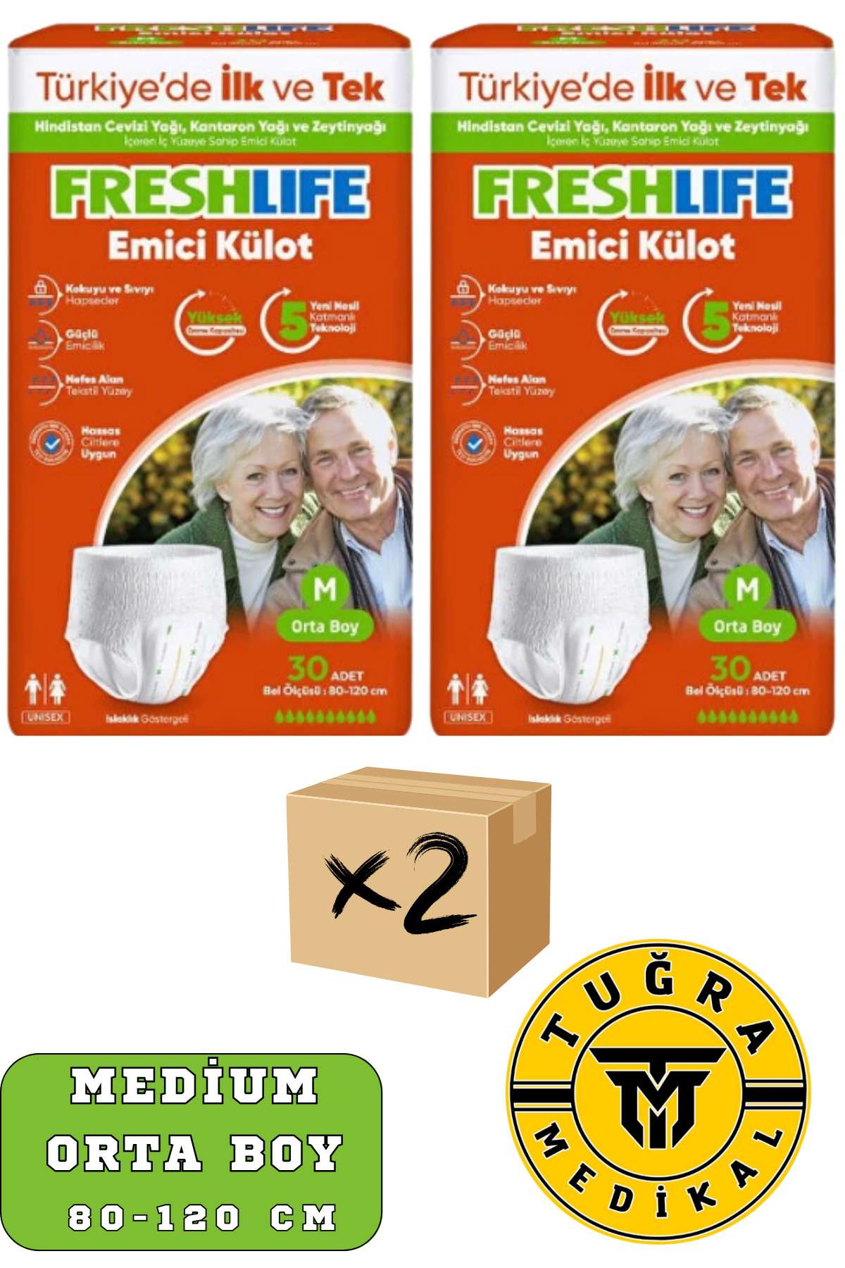 Freshlife Yetişkin Külotlu Hasta Bezi Emici Külot M (MEDİUM) 60 Adet 2 Paket