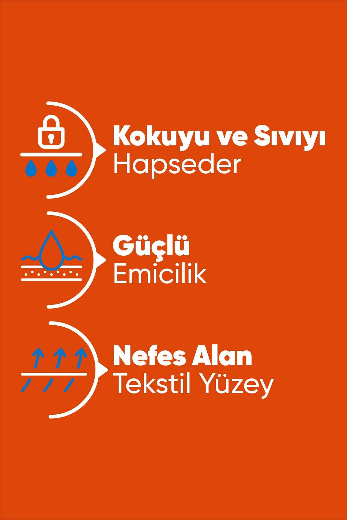 Sıvıyı ve kokuyu hapseder.