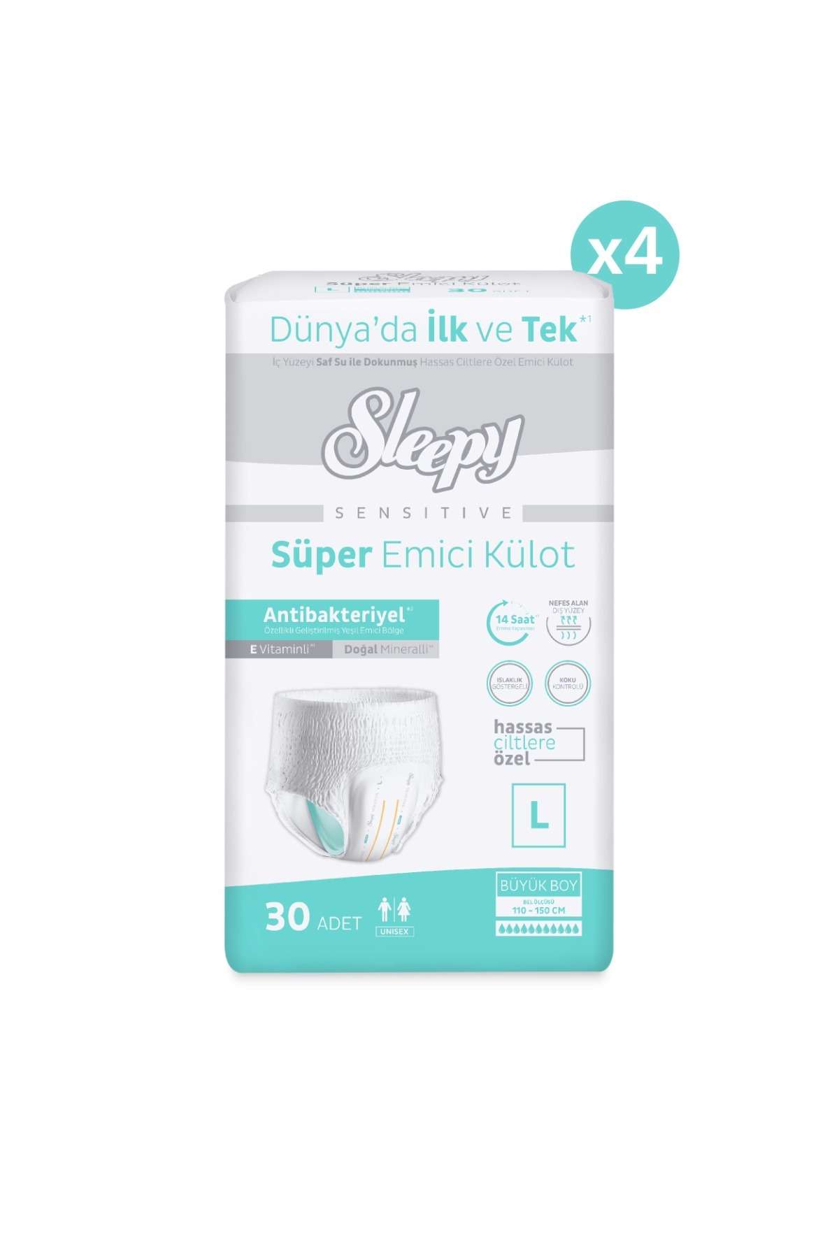 Sensitive Antibakteriyel Emici Külot Large 30×4 120 Adet